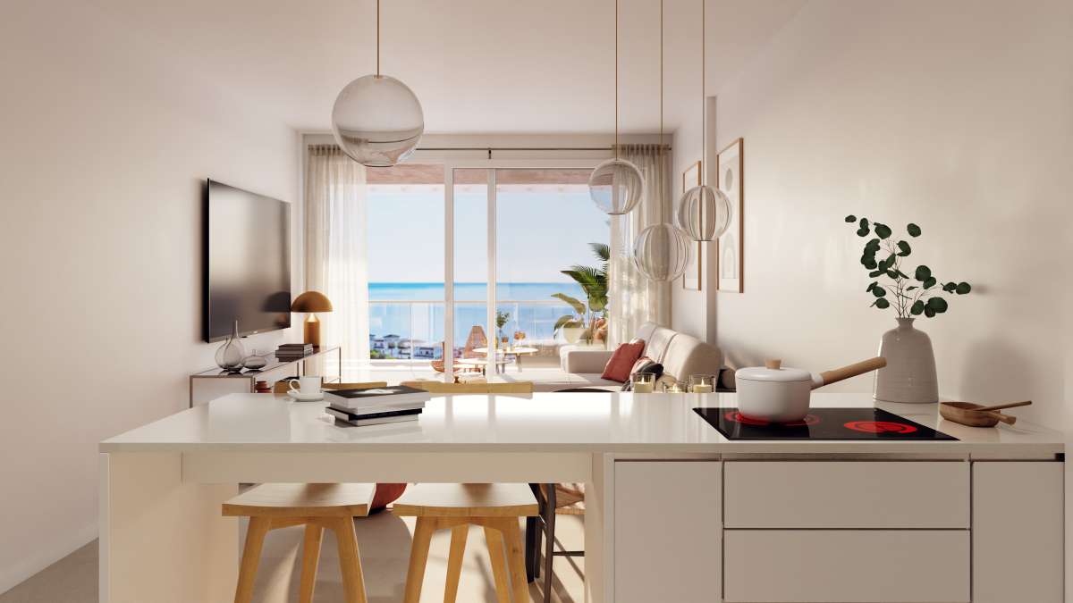 Los interiores de los apartamentos y adosados están diseñados para ofrecer un estilo de vida lujoso y cómodo. Con un diseño funcional y contemporáneo, las viviendas cuentan con espacios amplios y luminosos. Las cocinas, aunque no especificadas, se espera que estén equipadas con electrodomésticos de alta gama. Los salones conectan directamente con las terrazas, permitiendo disfrutar de la luz natural y las vistas impresionantes. Los dormitorios son amplios, con armarios empotrados y acabados de primera calidad. Los baños, modernos y elegantes, están equipados con las mejores instalaciones. Todo está pensado para proporcionar una experiencia de vida superior.