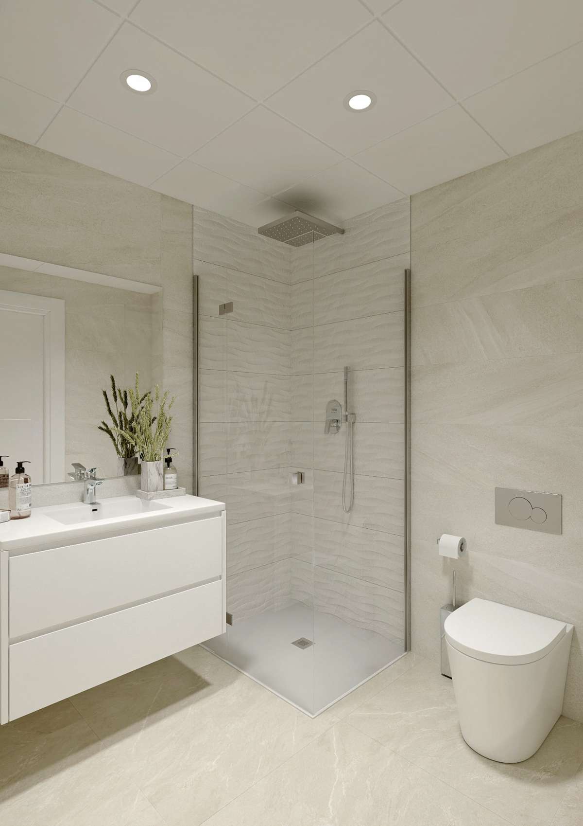 Cada apartamento ha sido diseñado para maximizar la luz natural y la comodidad. Con opciones de 2 y 3 dormitorios, las viviendas cuentan con amplias distribuciones que incluyen cocinas americanas de concepto abierto conectadas con acogedoras salas de estar, ideales para relajarse o recibir invitados. Los dormitorios disponen de armarios empotrados con cajoneras, mientras que los baños están equipados con calefacción por suelo radiante, mamparas de ducha y grifería de alta calidad. Las ventanas de doble acristalamiento garantizan un aislamiento térmico y acústico óptimo, creando un ambiente tranquilo y agradable en cualquier época del año.
