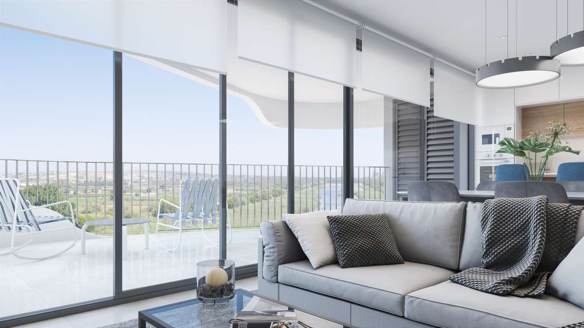 Cada vivienda ha sido diseñada pensando en el bienestar diario. Destacan los acabados de alta calidad como los suelos de gres porcelánico de primera en toda la casa, alicatados elegantes en los baños y techos lisos con acabados en escayola. La carpintería exterior de PVC con doble acristalamiento tipo Climalit proporciona un excelente aislamiento acústico y térmico, mientras que la puerta de entrada blindada y los armarios empotrados lacados en blanco añaden un toque de elegancia y seguridad. Las cocinas vienen completamente amuebladas con mobiliario moderno, encimera de Silestone o similar y fregadero empotrado, listas para ser disfrutadas desde el primer día. En los baños se incorporan muebles suspendidos, duchas con mampara de cristal, espejos y una cuidada grifería mono mando de alta gama. Además, cada vivienda está equipada con termo eléctrico de aerotermia de 100 litros, una solución eficiente y sostenible.