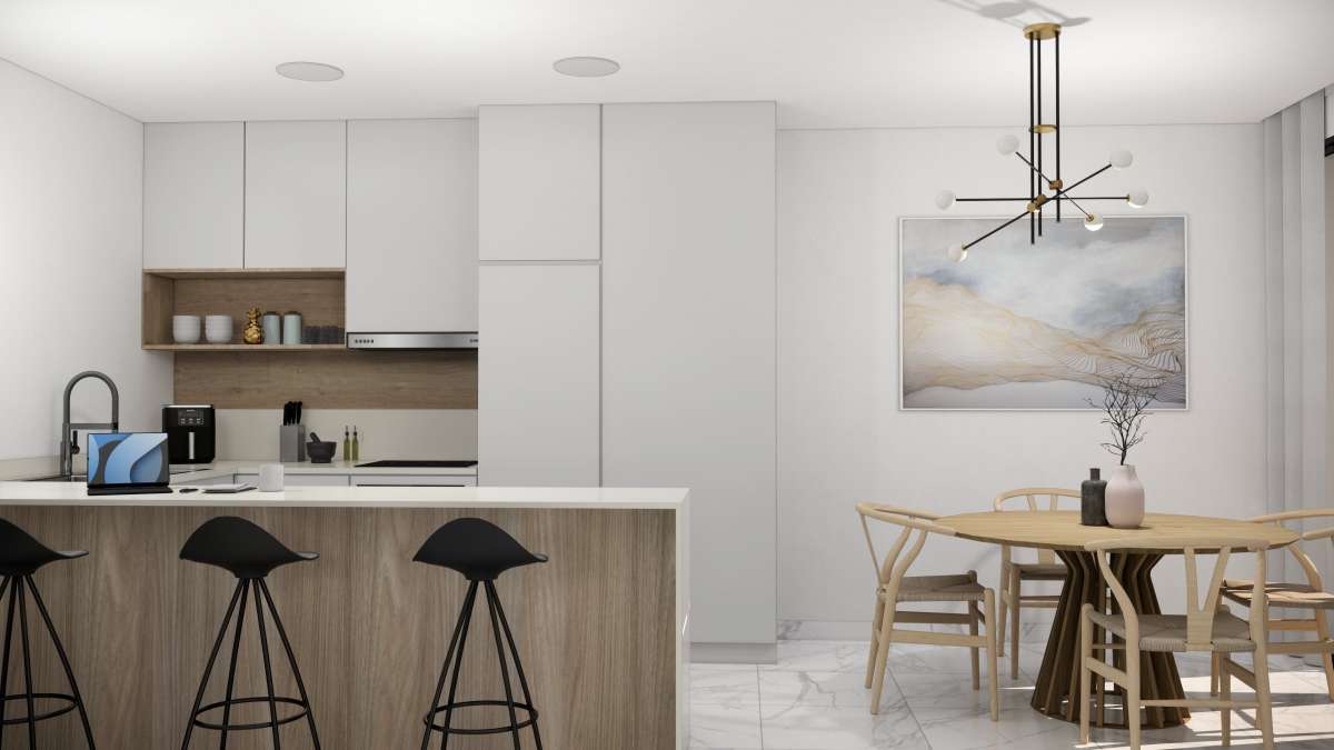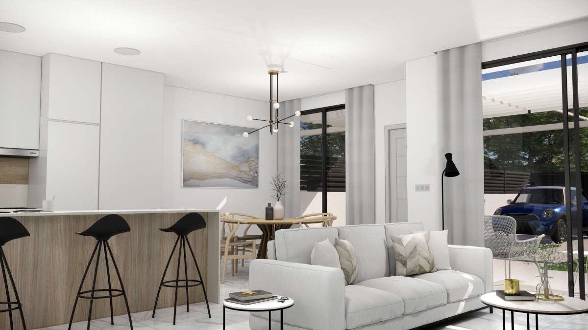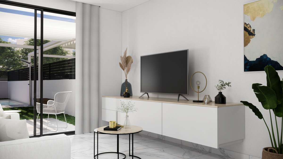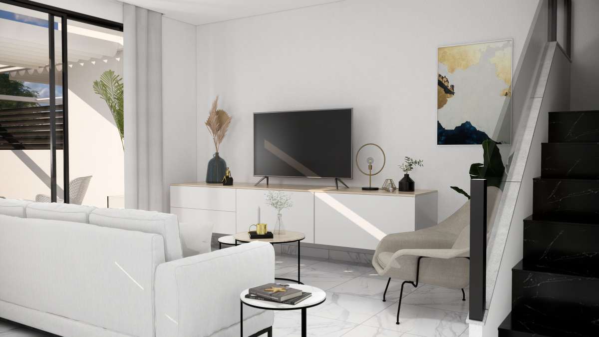 Destacan por sus interiores elegantes y funcionales. El diseño moderno incluye un amplio salón/comedor que se abre al jardín, perfecto para el entretenimiento. La cocina abierta está equipada con electrodomésticos integrados de alta calidad. En la planta baja, el dormitorio principal cuenta con vestidores y baño en suite, mientras que hay un baño adicional para invitados. En el primer piso, dos dormitorios dobles con armarios empotrados ofrecen espacio adicional para la familia o invitados. Opciones como el solárium en la azotea agregan un toque de lujo. Estos interiores combinan estilo y funcionalidad para crear un hogar confortable y contemporáneo en la hermosa Costa Blanca.