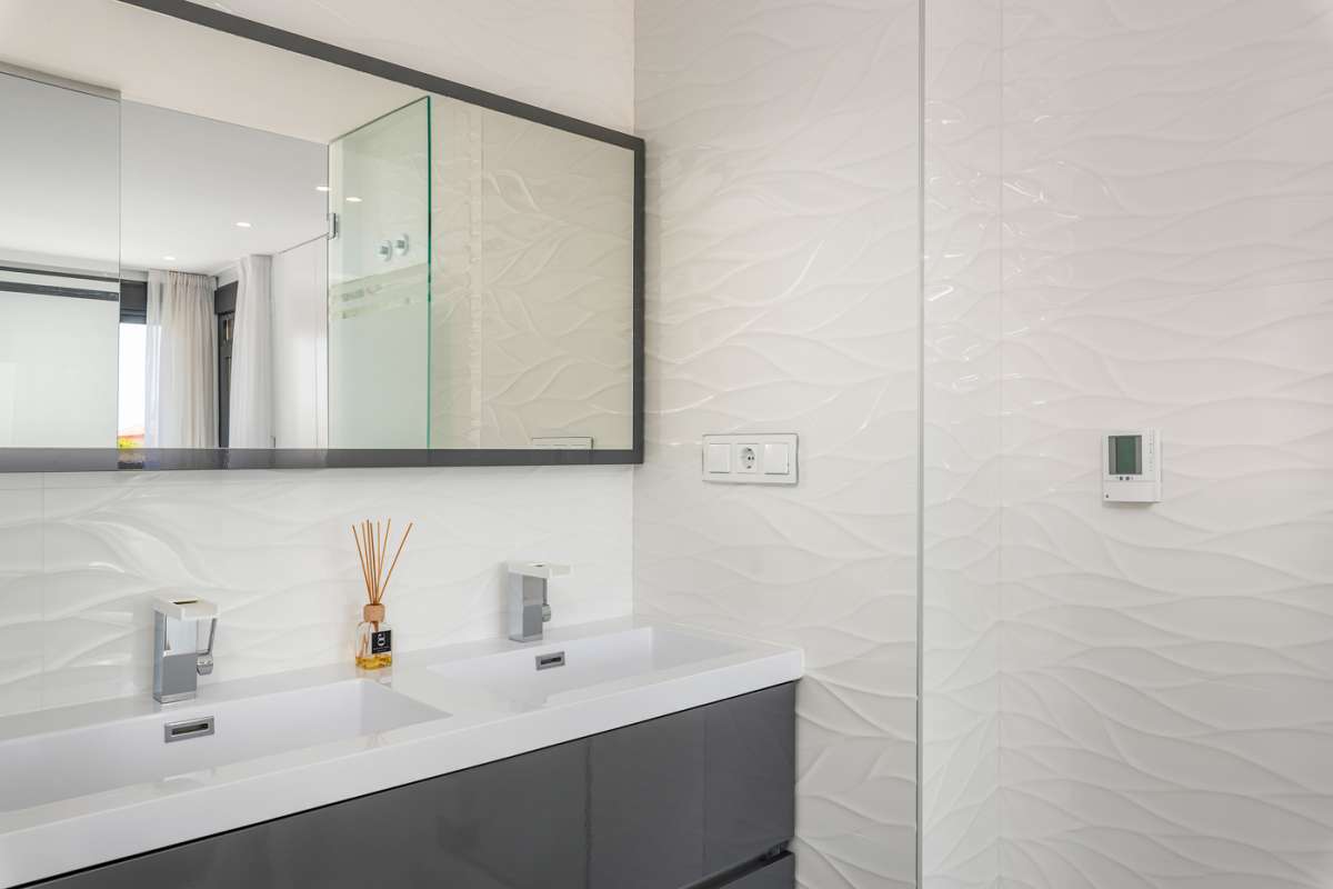 Los interiores de esta lujosa vivienda en la Manga de Murcia deslumbran con opulencia y estilo. Los espaciosos salones están decorados con muebles de diseño y detalles artísticos, mientras que las amplias ventanas ofrecen vistas panorámicas al mar. La cocina gourmet cuenta acabados de alta gama. Las habitaciones son elegantes y acogedoras, con baños de mármol y vestidores. Cada rincón de esta residencia irradia sofisticación y confort.