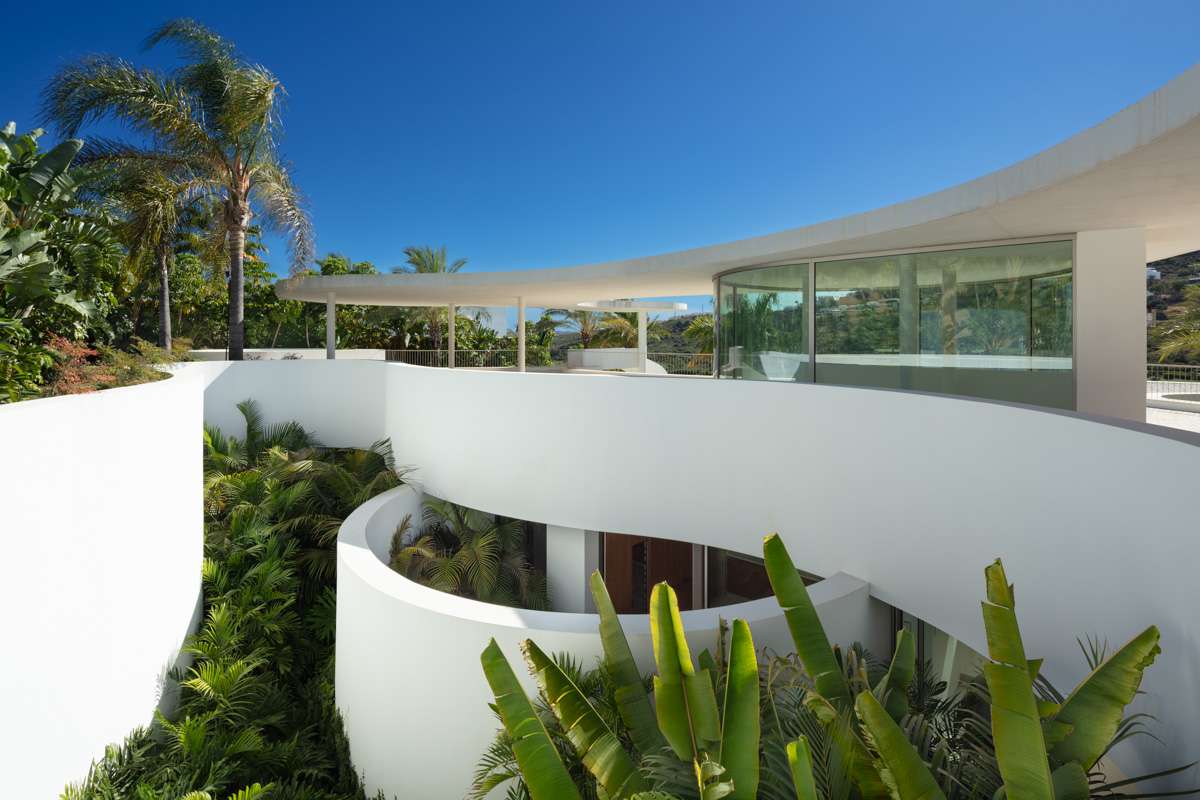 El interior de la villa es un espacio luminoso y abierto, diseñado para maximizar la conexión entre el interior y el exterior. La planta baja alberga amplias zonas de estar, un comedor elegante y una cocina completamente equipada que combina estilo y funcionalidad. Las cuatro habitaciones, diseñadas con un carácter único, ofrecen un oasis de confort, todas ellas bañadas por la luz natural gracias a las grandes ventanas y puertas corredizas de vidrio. Una escalera de caracol, cuidadosamente elaborada, conecta los niveles de la villa, creando un sentido de fluidez y grandiosidad en todo el espacio.