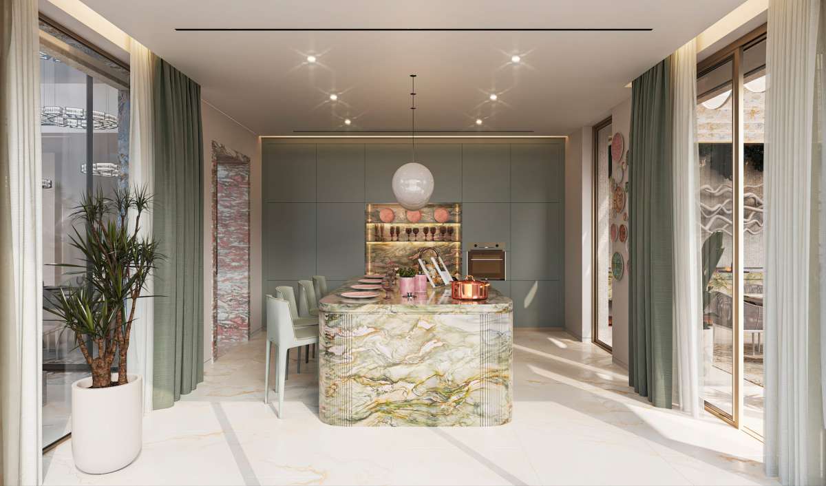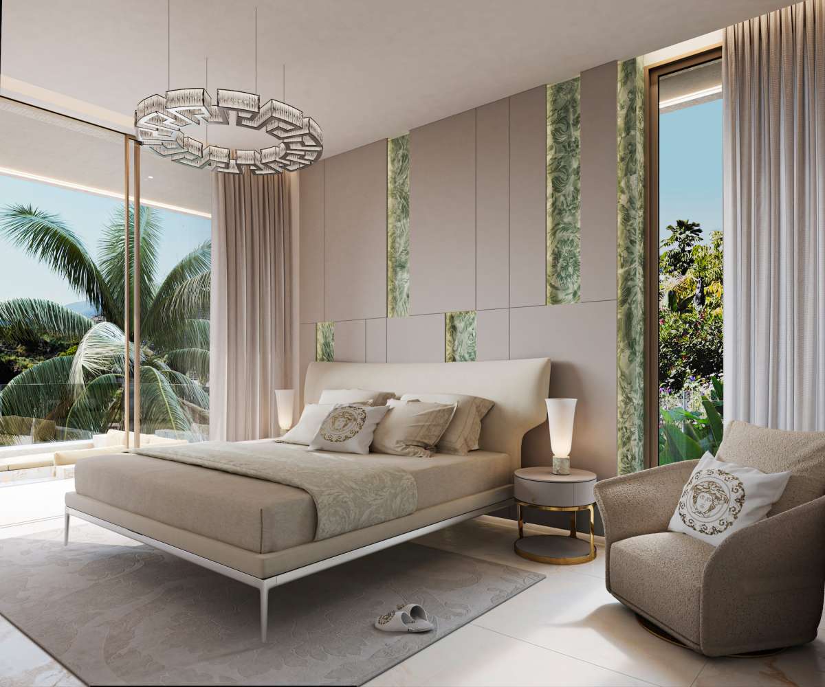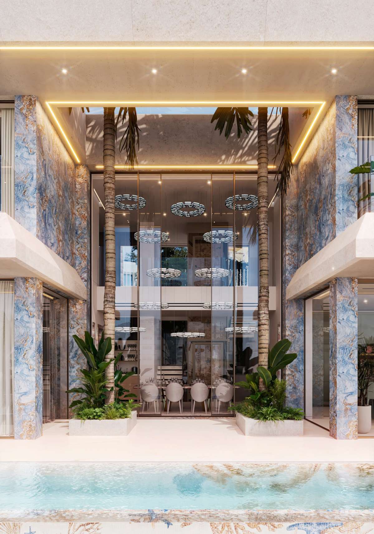 El interior de cada villa refleja un cuidado equilibrio entre sofisticación y confort. Los amplios espacios abiertos, bañados por luz natural gracias a ventanales de suelo a techo, se combinan con materiales de primera calidad como mármol, maderas nobles y acabados artesanales. La distribución incluye salones de generosas dimensiones, cocinas de diseño totalmente equipadas, suites principales con vestidor y baños en suite, así como estancias versátiles que pueden adaptarse a las necesidades de cada familia.